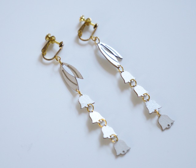 商品名:karupi 'すずらん' (中添ゆきのコラボデザイン) フランスでは、5月1日の「スズランの日」にスズランを贈られた人には幸せが訪れるのだとか。控えめで可憐な花の姿から、「幸福の再来」「謙虚」「あふれ出る美しさ」と言った花言葉を持ちます。 可憐な4つの小花を連ねたこのアクセサリーも、小さいながらふっと視線を奪う魅力を耳元から放ちます。きっとつけた人に幸せを運んでくることでしょう。 ・内容:イヤリング・ピアス(本体素材:紙) ・本体サイズ:縦約7cm ◆「karupi music」は、若手の演奏家とkarupiデザイナーのコラボから生まれたアクセサリー・ラインナップです。 デザイナー: 倉嶌隆広 デザインコラボ: 中添ゆきの(ヴァイオリニスト:東京藝術大学音楽学部ヴァイオリン専攻卒業)