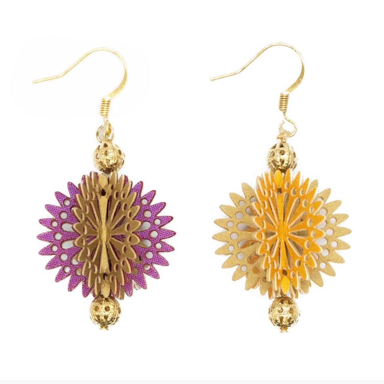 花火をモチーフにkarupi をデザインしてみました。夏の耳元を軽やかに彩ってくれる色づかいです。